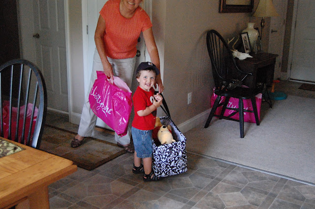 Favorite Toys and Things to do: You still love tractors and all things that have a motor. You love to play with your farm and love to show it to people, "I show farm." You really love your tricycle at Mimi's house and wheel barrow. You also love water guns and shooting people with the water. You are very mischievous and you know what pretend means and you will tell me or Dad to pretend a gold club is a rifle so that we do not take your gun but we can still play. You love to play hide and seek but you will not stay in your hiding place.